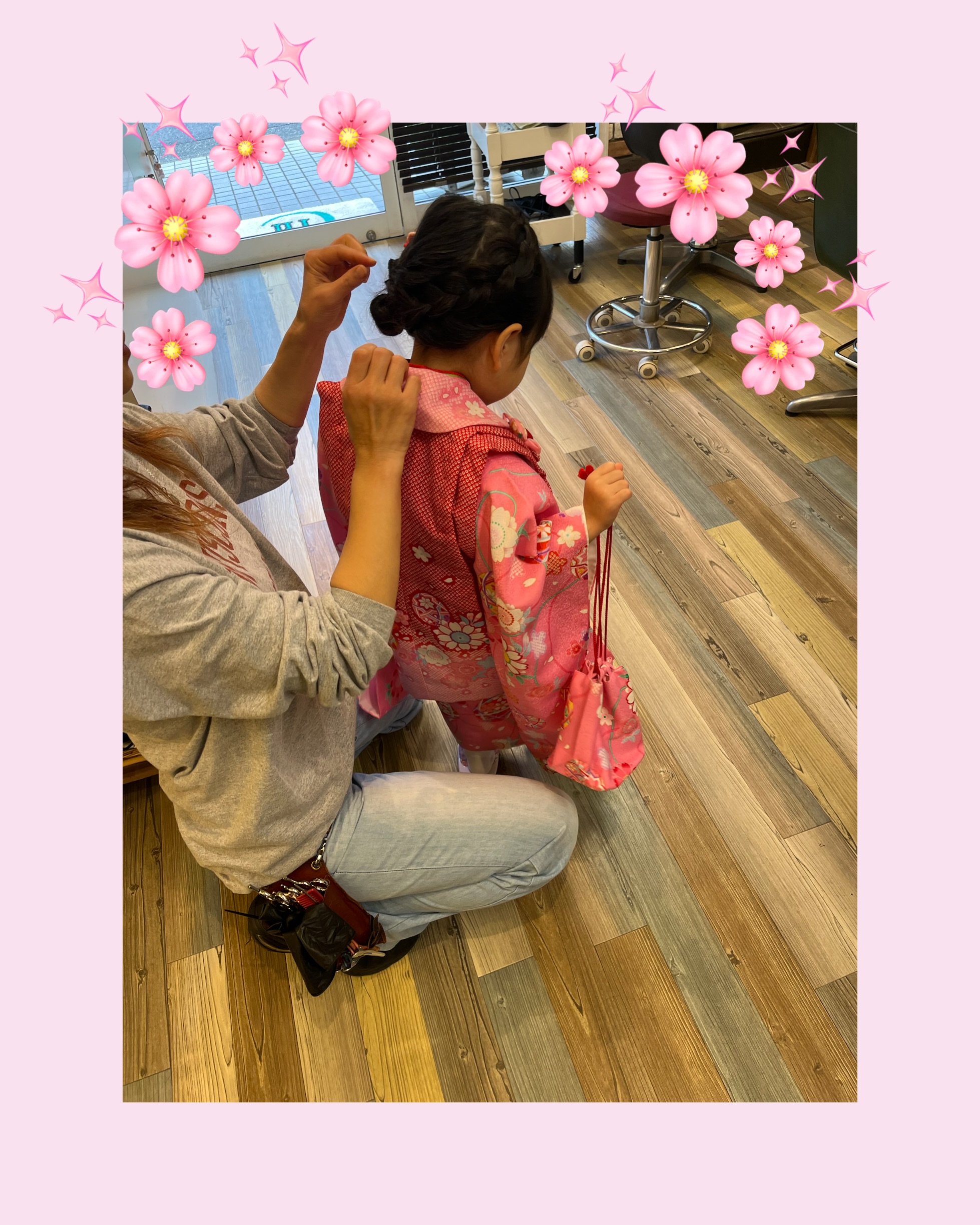 ヘアセットと着付けのお支度をしに来てくれた3歳のお嬢様🌸