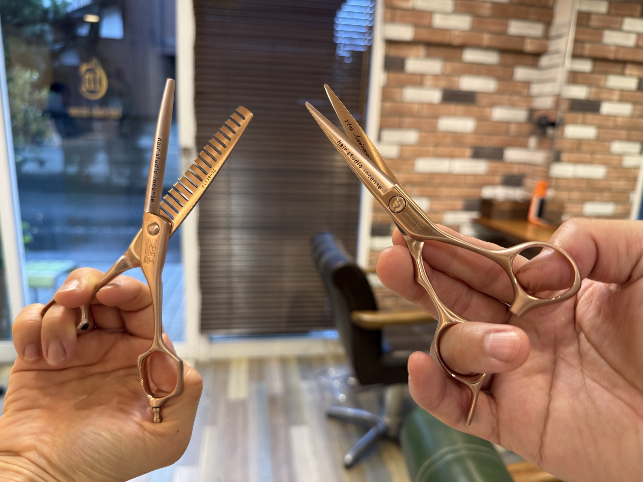 入社時より徐々に働く時間も増え頑張ってくれています。 ナオさんに感謝の気持ちとサロンの次への一歩踏み出した記念に、二人で記念シザーを🎁