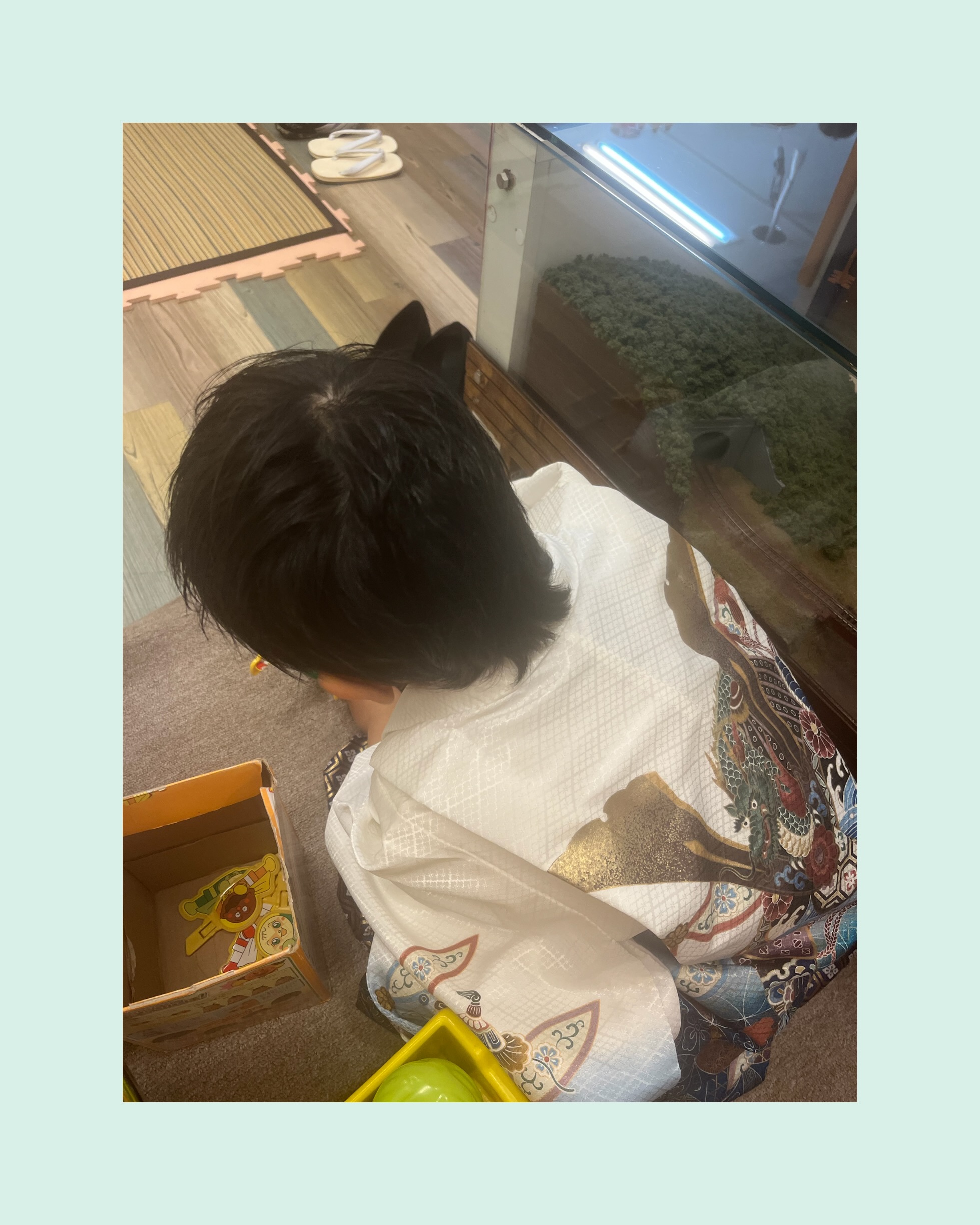 お店に元気よく入ってきてくれておもちゃが気になりながら頑張ってお支度できました😊